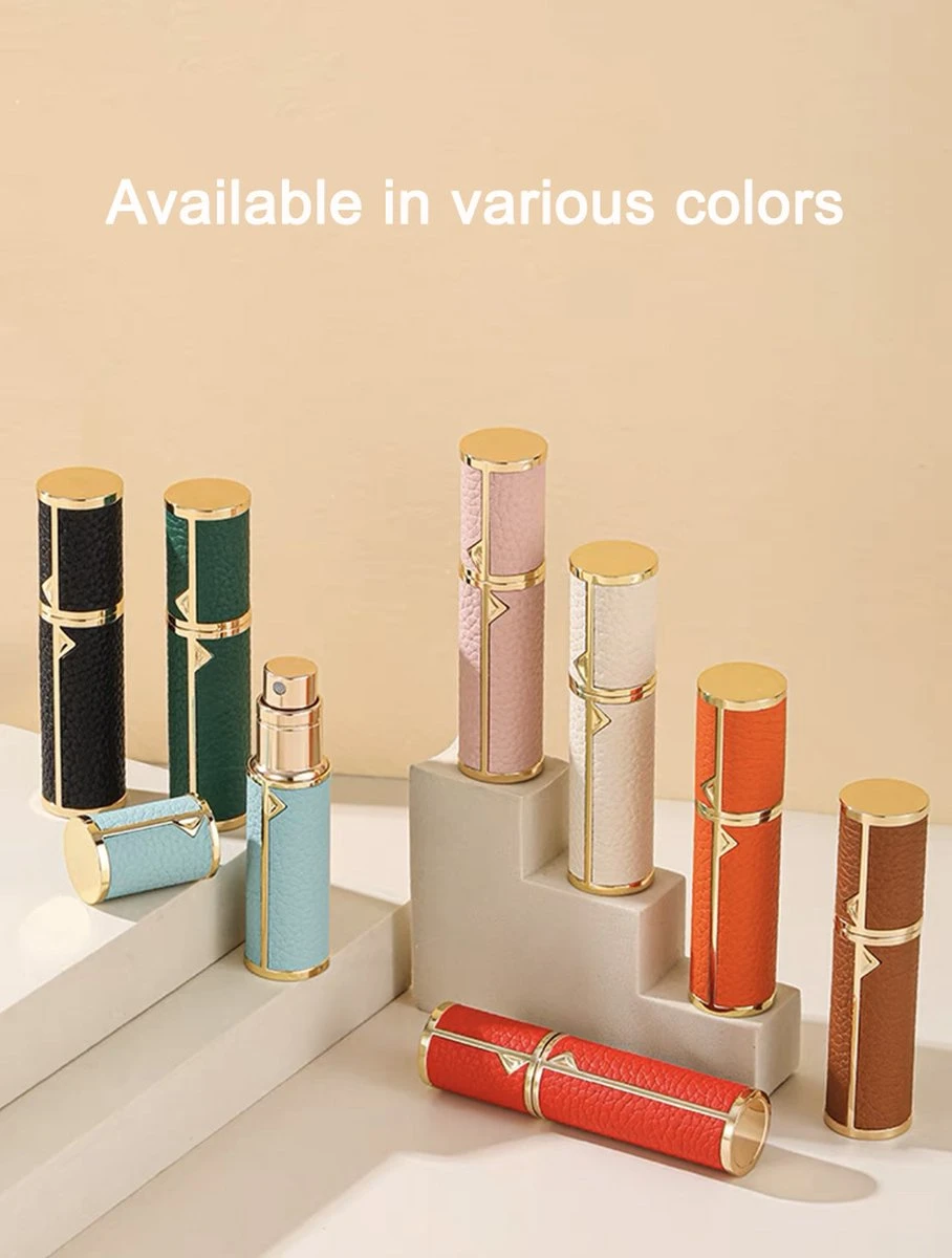 De kleine fles (5ml) in reisformaat is eenvoudig in enkele seconden bij te vullen door de spuitmonden van beide flessen aan te sluiten. De sprayfles heeft een doorzichtige flacon aan de binnenkant om gemakkelijk te zien hoeveel parfum er nog over is. Deze draagbare, hervulbare parfumfles in zakformaat biedt genoeg parfum voor een korte reis of een avondje uit. Het lekvrije ontwerp van deze parfumfles neemt je zorgen weg over het uitlekken van je vorige parfum tijdens de reis, het is uitgerust met lekvrije mechanismen. Pomp stevig op en neer totdat de minifles vol is (voorkom overvullen). De parfumfles is verkrijgbaar in 10 kleuren. Buitenste laag is koeienleer met vergulde zinklegering; en PCTG-binnenfles met antislip van koper